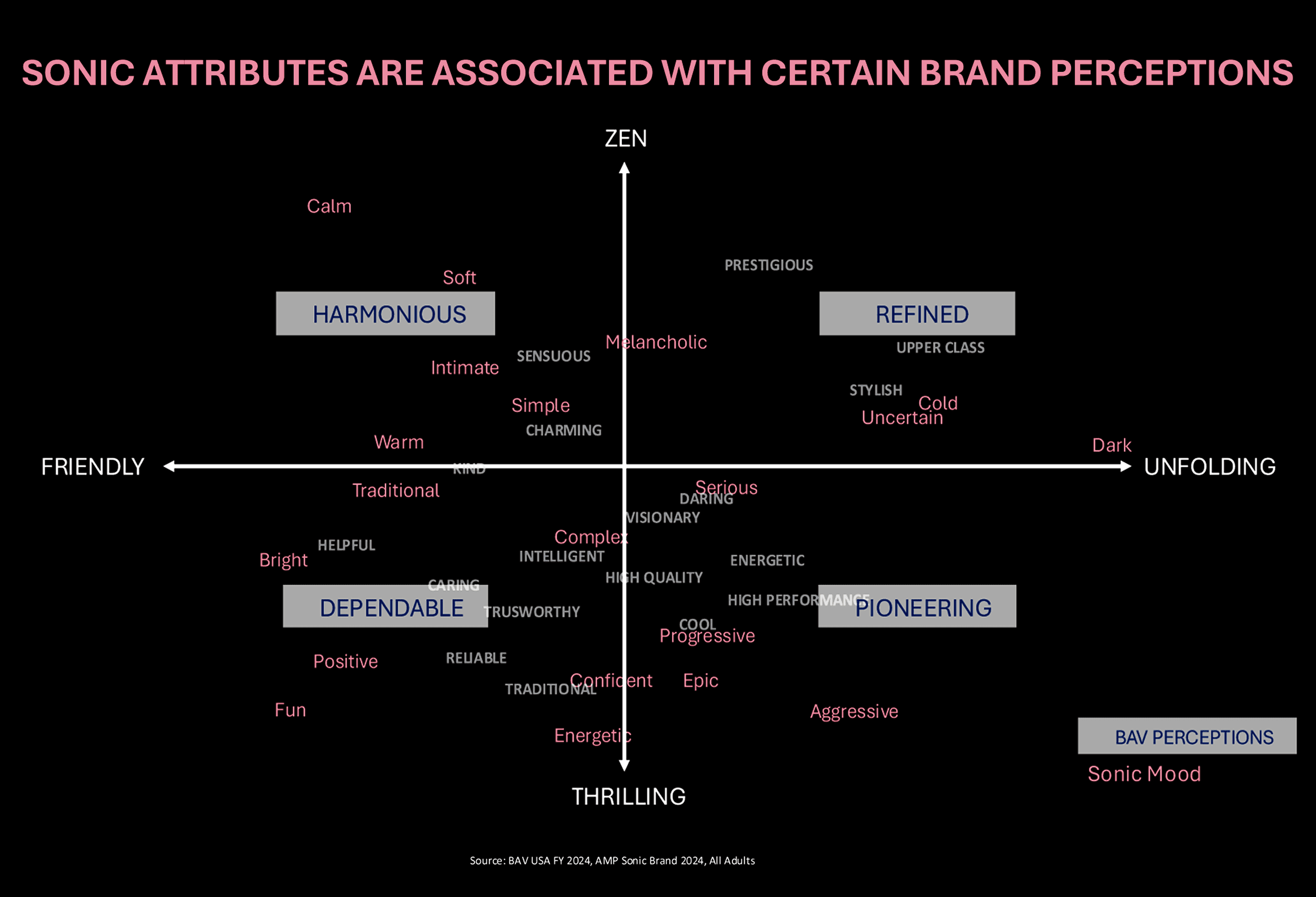 If your brand walked into a room, what would people feel first: fun or serious, warm or cold, zen or thrilling? New joint research from amp and BAV shows those vibes aren’t fluff. A brand’s sonic equity is a strong signal of its cultural equity, reflecting brand strength, stature, positioning, and business outcomes-and it’s measurable.